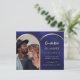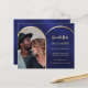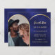 Une photo Enregistrez la carte de date pour votre mariage Ajoutez votre propre photo de taille verticale. Cadre de l'arc photo en or Faux. Un arrière - plan bleu marine, texte doré. La couleur bleue est inégale. Personnalisez et ajoutez vos noms et la date.