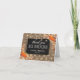 Cartes de remerciement de mariage de récolte rustique avec un fond en bois de style chic campagne, centre de table en tableau noir, corde, citrouilles d'Halloween, feuillage d'automne, glands, une dispersion de feuilles d'automne, lumières scintillantes en fil et un modèle de texte personnalisé.