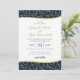 Elégant faire-part de mariage bleu marine et or avec couleur arrière - plan changeable et texte modifiable.