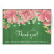 Elégant mariage floral merci modèle de carte pliée avec des pivoines rose vif et chaîne de lumières chatoyantes sur arrière - plan de bois de grange vert émeraude. +++++++++++++++++++++++++ Convient pour le printemps, l'été, le jardin rustique mariages extérieurs.