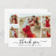 Modern Script Mariage 5 Photo Collage Carte de remerciements abordable en noir et blanc. Élégant minimaliste élégant modèle de carte mariage avec cinq (5) photos de grille collage sur le devant et un script de calligraphie "Merci" cursive dans une police d'écriteau à la main. Personnalisez votre nom et merci message.