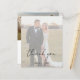 Carte de remerciements mariage à budget photo moderne avec un design simple avec "merci" dans un style rustique typographie script avec vos noms et date mariage sur votre photo préférée avec une superposition opaque. Cette carte de remerciements élégante à la disposition minimaliste conviendra à tous les styles de mariage.