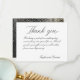 Une calligraphie classique de script de serif met en évidence cette Carte de remerciements mariage. Le dos de la carte est recouvert d'un granit noir avec des veines dorées et une bordure en or. C'est un Carte de remerciements sans photo.