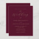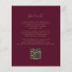 Cette faire-part de mariage simple et moderne présente un texte de couleur or sur un arrière - plan bordeaux, avec les mots "le Mariage de" dans une élégante calligraphie manuscrite. Ajoutez les noms du couple dans serif et les détails du mariage dans la police sans serif. L'envers offre de l'espace pour les détails du mariage, ainsi qu'un code QR que les clients peuvent scanner pour visiter votre site Web et RSVP, ce qui permet d'économiser le coût d'impression et d'envoi de RSVP séparés