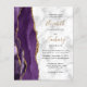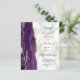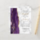 Le bord gauche de cette élégante faire-part de mariage moderne est orné d'une bordure d'aquarelle violette ornée d'une parties scintillant en faux or. Le texte personnalisable combine écriture manuscrite couleur or avec cuivre noir et polices italiques sur un arrière - plan en marbre blanc et gris. Ajoutez des détails supplémentaires à l'arrière, ainsi qu'un code QR pour aider les clients à visiter votre site Web mariage.