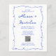 Budget Moderne Whimsical Blue Main Drawn & Handwriting Police Monogramme QR code Faire-part de mariage.