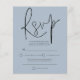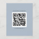 Un rapport qualité-prix BUDGET alternative sur une taille plus petite 4,5 x 5,6" semi-brillant poids 110lbs, qui est d'une épaisseur similaire à une carte postale (cependant ne convient pas à l'utilisation comme carte postale.) VEUILLEZ NOTER qu'il y a UN invitation par feuille. Script budgétaire QR Code Mariage Dusty Blue RSVP. Votre code QR du site Web mariage est au verso, il suffit de remplacer l'exemple de code. Une typographie stylisée en noir pour le titre principal RSVP complétant le reste du texte que vous pouvez facilement personnaliser.