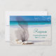 Ce design romantique présente une photo d'une plage de sable blanc avec l'océan dans de beaux tons bleus. Le corail est aménagé avec art avec des coquillages. Les torrents sont inspirés par les vagues de l'eau. Personnalisez cette RSVP avec les détails de votre prochain mariage. Elles sont idéales pour les mariages à thème de plage ou de destination.