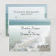 Carte RSVP pour assortir à nos invitations de mariage de plage 13x18 cm, avec un magnifique fond d'océan, de l'eau turquoise aqua, des vagues blanches qui se brisent et du sable. Invitez votre famille et vos amis à votre mariage de destination, mariage en croisière ou mariage de plage avec cette jolie invitation. VEUILLEZ NOTER que si vous utilisez "l'invitation de type billet", veuillez utiliser la petite carte de réponse en forme de carte pour qu'elle rentre dans la même enveloppe que l'invitation. (Cette carte rentre uniquement dans l'invitation de 13x18 cm). Personnalisez en ligne avec vos informations.