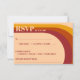 Coloris rétro vintage classique avec des lignes rayées ondulées arc incurvées carte de réponse RSVP mariage. Design cool avec des couleurs hippie crème, orange et rouge. Modifiez le nombre de tables que vous avez.