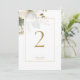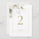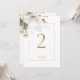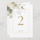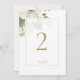 Chic et élégant. Ce magnifique numéro de table mariage présente un joli bouquet floral aquarelle aux accents d'or imitation. Le design comprend une police contemporaine en imitation or sertie à l'intérieur d'une douce couverture blanche avec cadre délicat. La conception est répétée à l'arrière.