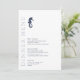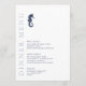 Cette élégante suite de mariage présente un style nautique classique et un style épuré et minimaliste. Des vagues stylistiques dans les teintes de l'aqua au bleu marine et une belle illustration d'hippocampe apportent des accents uniques. Une disposition asymétrique, avec le texte optionnel "Dinner Menu" qui prévaut dans le format vertical, donne à ce faire-part de mariage une touche moderne saisissante. Idéal pour les mariages de club nautique, de bateau, de plage ou d'été. Recherchez ID836 pour voir cette suite complète et d'autres avec des accents d'éléments marins alternatifs.