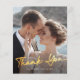 Il s'agit d'un carte de remerciements de mariage photo moderne et minimaliste économique avec un script manuscrit doré, imprimé sur une feuille de papier plat. Modifiez facilement le texte et la photo en utilisant le modèle fourni. Le revers comprend une autre photo et un message de remerciement que vous pouvez personnaliser ou supprimer complètement si vous préférez écrire votre note de remerciement à la main. Veuillez contacter le concepteur pour toute question relative à ce design.