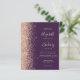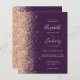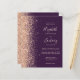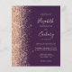 Le bord gauche de cette élégante faire-part de mariage moderne est orné d'une bordure en faux parties scintillant pêche. Le texte personnalisable combine écriture pêche pâle, cuivre et italique sur un arrière - plan violet foncé. L'envers est assorti d'un violet foncé et d'une parties scintillant de pêche.