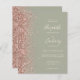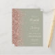 Le bord gauche de cette élégante faire-part de mariage moderne est orné d'une bordure rose en faux parties scintillant or. Le texte personnalisable combine écriture ivoirienne, copperplate et polices italiques sur un arrière - plan vert sage. L'envers est assorti d'un design vert sauge et d'or rose.
