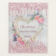 Un arrière - plan faux argenté. Bleu rose faux gouttes de parties scintillant, la peinture goutte à goutte comme décoration. Un coeur doré orné de fleurs roses. Personnalisez et ajoutez un nom et une année. Le nom est écrit avec une écriture manuscrite moderne.