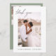 Envoyez un message de remerciement chaleureux et élégant avec ce Mariage photo Sage Green Script. Doté d'un arrière - plan vert sage, d'une typographie de script gracieuse et d'un espace pour votre photo mariage préférée, ce design est parfait pour les thèmes mariages d'inspiration nature, rustique ou minimaliste. Personnalisez-le avec vos noms et une note sincère pour créer un souvenir significatif qui reflète la beauté et la gratitude de votre journée spéciale.