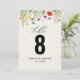 Ce charmant numéro de table apporte une touche de beauté naturelle à vos tables mariages. Doté d'une délicate aquarelle illustrant une prairie fleur sauvage, ce signe crée un sentiment de romantisme et d'élégance. L'élégante police de script et la palette de couleurs douces complètent le design floral, ce qui en fait un choix parfait pour les mariages du printemps et de l'été.