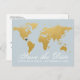 Créez une carte "save the date" pour un mariage à destination inspirée des cartes du monde vintage avec un look simple et moderne, doté d'un fond bleu pâle et de polices et de typographie vintage, ainsi qu'un cœur que vous pouvez déplacer vers l'emplacement de votre mariage ou SUPPRIMER entièrement, ou copier-coller pour inclure deux cœurs ou plus sur la carte dorée qui est détaillée pour inclure de minuscules îles. —— Cliquez sur PERSONNALISER DAVANTAGE pour déplacer le cœur, changer la couleur du fond et du texte, changer les polices ou réorganiser le design.