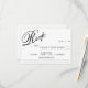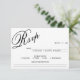 Carte de réponse RSVP mariage noir et blanc avec une grande police de script élégante. Personnalisez-le avec les détails de votre événement.