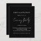 Un rapport qualité-prix BUDGET alternative sur une taille plus petite 4,5 x 5,6" semi-brillant poids 110lbs, qui est d'une épaisseur similaire à une carte postale (cependant ne convient pas à l'utilisation comme carte postale.) VEUILLEZ NOTER qu'il y a UN invitation par feuille. Budget Script Mariage soirée Black Invitation. Un ensemble de style manuscrit pour Soirée et le reste du texte que vous pouvez facilement personnaliser. Le texte et les couleurs arrière - plans peuvent être changés à n'importe quel ou à votre choix via l'option customiser plus loin.