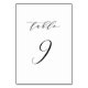 Tableau 9. Carte de numéros de table élégante avec script minimaliste noir. Ce numéro de table noir et blanc est parfait pour les mariages, les diplômes, les baby showers, les douches nuptiales et autres événements. D'autres numéros et couleurs sont disponibles.