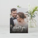 Une façon géniale et réfléchie de remercier vos amis, votre famille et vos collègues qui sont venus vous soutenir le jour de votre mariage avec cette photo moderne, cartes de remerciement avec un script écrit "merci" et un coeur d'amour.