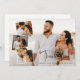 Dites merci à vos invités mariages avec un collage photo où vous pouvez présenter quatre de vos belles photos de mariage. Une grande photo recouvre l'intégralité de la carte. Choisissez une photo où vous avez beaucoup d'espace négatif sur le côté gauche. Les trois autres photos sont carrés et plus petites. Ajoutez vos noms et votre date de mariage dans une police noire moderne. Le Merci est écrit dans un charmant script manuscrit. Sur le dos, vous pouvez écrire à la main un message de remerciement personnel sur l'arrière - plan légèrement aligné.