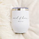 Tumbler à vin de mariage personnalisé pour votre fête de mariage met en vedette "bonne d'honneur" dans une élégante typographie de calligraphie classique avec votre servante du nom de l'honneur en dessous.