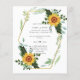 Belle Tournesols Rustiques avec cadre géométrique or bordure verte. texte Champs modèles des deux côtés pour ajouter tous vos détails supplémentaires y compris rsvp, registre de cadeaux, réception, hébergement et plus.