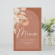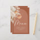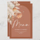 Carte de menu mariage moderne en terre cuite bohème pampas herbe élégant.