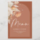 Carte de menu mariage moderne en terre cuite bohème pampas herbe élégant.