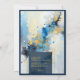 Cette faire-part de mariage dynamique présente une composition abstraite de plaques d'encre bleue, or et noire, créant une déclaration visuelle audacieuse et artistique. Le mélange fluide des couleurs contraste avec des accents vifs et vifs, évoquant un sens de l'énergie et de la créativité. Parfait pour des thèmes ou des créations modernes, artistiques inspirés de l'expressionnisme abstrait, cette pièce allie élégance et modernité. Cette conception peut être appliquée à plus de 1 000 produits. Contactez-moi via Zazzle pour des demandes personnalisées - J'aimerais vous aider ! Elle est faite par un contenu générationnel.