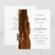 Le bord gauche de cette élégante faire-part de mariage moderne comporte une bordure d'aquarelle couleur orange brûlée et rouille bordée d'une parties scintillant en faux or. Le texte personnalisable combine le script gris charbon et les polices sans serif sur un arrière - plan blanc. L'envers offre de l'espace pour les détails mariages sur un arrière - plan bleu marine solide, ainsi qu'un code QR que les invités peuvent scanner pour visiter votre site Web et RSVP, qui économise le coût d'impression et d'envoi de cartes RSVP séparées.