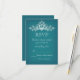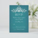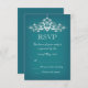 Design élégant de carte RSVP mariage avec un lustre argenté très détaillé sur un arrière - plan bleu. Ce design est offert sur plusieurs produits de papeterie pour faire un beau thème pour tous vos papeteries mariages.