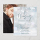 Une invitation de mariage économique et élégante avec une typographie calligraphique chic et des flocons de neige délicats tombant sur vos noms personnalisés, date spéciale et détails de la célébration de mariage sur un fond de givre hivernal et votre photo spéciale au verso. Conçu par Thisisnotme©