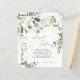 Conception avec éléments végétaux eucalyptus aquarelle avec éléments de paillettes dorées floraux. Utilisation d'une police calligraphique élégante de couleur or pour le nom des mariés qui le fait ressortir.