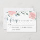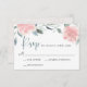 Une carte RSVP de mariage floral très élégante, avec une bordure de fleur rose délicate et de branches feuillues bleu-vert bordant votre texte RSVP. Personnalisez avec la date de réponse requise.
