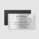 Une carte magnétique Enregistrer la date pour un mariage. Un arrière - plan faux argenté, décoré de roses blanches, de fleurs et de dentelle blanche. Personnalisez et ajoutez une date et vos noms. Le texte : Save the Date est écrit avec un grand script de style à la main tendance.