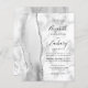 Le bord gauche de cette élégante faire-part de mariage moderne est orné d'une bordure en aquarelle grise et blanche ornée d'une parties scintillant en faux argent. Le texte personnalisable combine écriture manuscrite noire, copperplate et polices italiques sur un arrière - plan en marbre gris et blanc. L'envers présente un design d'agate gris et argenté assorti.