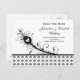 Une élégante carte de mariage 'save the date' en noir et blanc à damas avec un motif de plume de paon en filigrane orné d'un œil de paon en forme de cœur unique. Personnalisez le texte en ajoutant les noms des mariés et la date et l'heure du mariage.