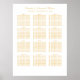 Un élégant tableau des sièges de réception en or simple avec le nom de la mariée et du marié et la date du mariage en haut. Customisez et personnalisez pour ajouter vos propres détails. Sur la droite, vous pouvez utiliser le modèle pour remplir facilement les noms de vos invités par table. Une fois terminé, assurez-vous de cliquer sur "Customisez-le !" pour modifier les couleurs et les styles de police, supprimer les tables, ajouter des tables, etc. pour vraiment personnaliser votre mariage spécial !