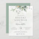 Belle invitation de mariage avec aquarelle eucalyptus et feuilles dorées.