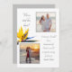 faire-part mariage avec design de fleurs exotiques aux oiseaux de paradis et deux modèles photo. Le texte gris en haut est : "Nous avons noué le noeud" et peut facilement être remplacé par "Nous sommes mariés", "M. et Mme", "Annonçant un mariage" ou votre choix de libellé qui convient. Noms, lieu du mariage et autres informations sont ajoutés en bas à droite. Mettez le papier à niveau comme vous le souhaitez. Les modèles photo carrés sont encadrés en blanc et l'orientation paysage ou portrait fonctionnera si votre image désirée est au centre. L'inverse est gris solide.