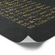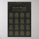 Tableau de sièges mariage pour seize tables avec un arrière - plan de tableau noir imprimé, du texte et des confettis de couleur or et des polices élégantes. Note : les couleurs dorées sont des effets imprimés, pas de véritables feuilles d'or.