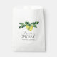 Ce sac de faveur de mariage contient les mots "L'amour est doux" dans la typographie à la mode. Aquarelle citrons et feuilles dans les tons de dans les tons de jaune et vert cadres le dessus. Utilisez les champs modèle pour ajouter vos noms et votre date de mariage ou du texte personnalisé. Pour en savoir plus sur la papeterie mariage citrus, visitez www.zazzle.com/dotellabelle