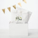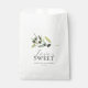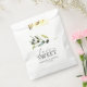 Ce sac de faveur de mariage contient les mots "L'amour est doux" dans la typographie à la mode. Une branche d'olivier aquarelle encadre le dessus. Utilisez les champs modèle pour ajouter vos noms et votre date de mariage ou du texte personnalisé. Pour en savoir plus sur la papeterie mariage rustique, visitez le www.zazzle.com/dotellabelle L'art et le design de l'aquarelle de Victoria Grigaliunas