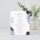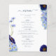 Beau fleurs sauvages d'aquarelle boho et feuillage en bleu roux, bleu cornflower, bleu marine, violet et vert, idéal pour une journée unique de printemps ou d'été du menu mariage. Élégant script de typographie moderne en bleu marine complète la charmante boho à la main peinte à la main qui comprend des fleurs de maïs, pavot, cosmos, ne m'oubliez pas les noeuds et feuillage délicat. Menu mariage bohème chic parfait pour une prairie de printemps, mariage d'été dans le jardin. OEuvre originale de l'artiste Catherine Sweetman