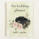 Magnifique planificateur de mariage romantique avec des fleurs noires et roses blush et quelques jolies feuilles.