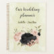 Magnifique planificateur de mariage romantique avec des fleurs noires et roses blush et quelques jolies feuilles.